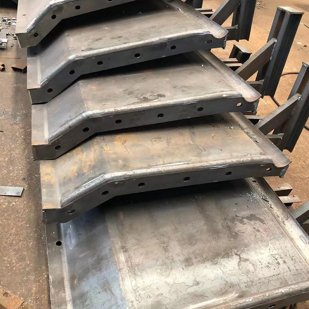 防撞护栏钢模板主要用在混凝土防撞护栏的浇筑,有现浇和预制两种形式,现浇的有SS级、SA级、SX级、HA级等形式,预制的有新泽西护栏等;防撞护栏钢模板的周转率是非常高的,通常一定长度的桥面边缘都会设置防撞护栏来提高车辆通行的安全性,而且防撞护栏的浇筑施工速度是非常快的,这就要保证其坚固耐用的特性,防止周转过程中出现开焊、漏浆等问题;在防撞护栏钢模板的设计中,也要结合项目施工的特点以及现场人员的要求,设计出更加容易拆模、吊装、移动以及重量上更加合理的模板;其主要材质为Q235,部分特殊要求的项目也会采用5+1复合钢板制作。