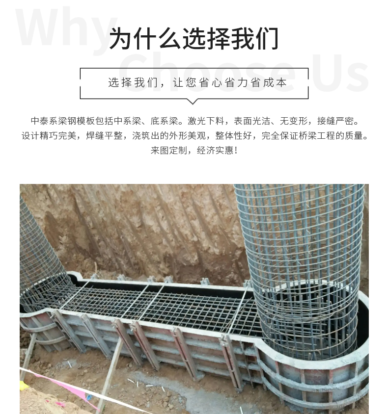 中泰系梁钢模板包括中系梁、底系梁。激光下料,表面光洁、无变形,接缝严密。设计精巧完美,焊缝平整,浇筑出的外形美观,整体性好,完全保证桥梁工程的质量。来图定制,经济实惠!