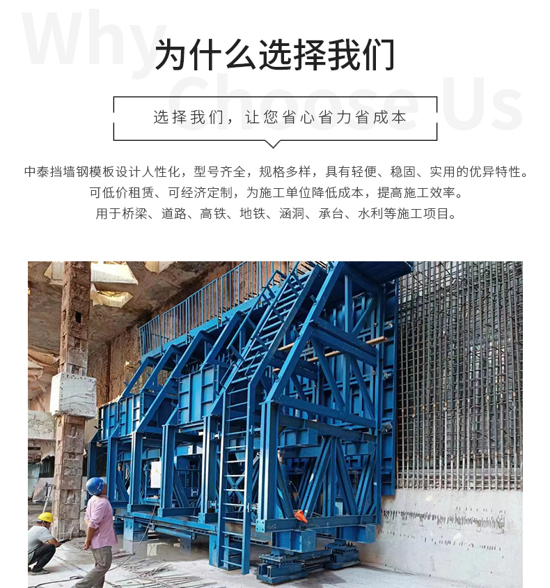 中泰挡墙钢模板设计人性化,型号齐全,规格多样,具有轻便、稳固、实用的优异特性。可低价租赁、可经济定制,为施工单位降低成本,提高施工效率。用于桥梁、道路、高铁、地铁、涵洞、承台、水利等施工项目。